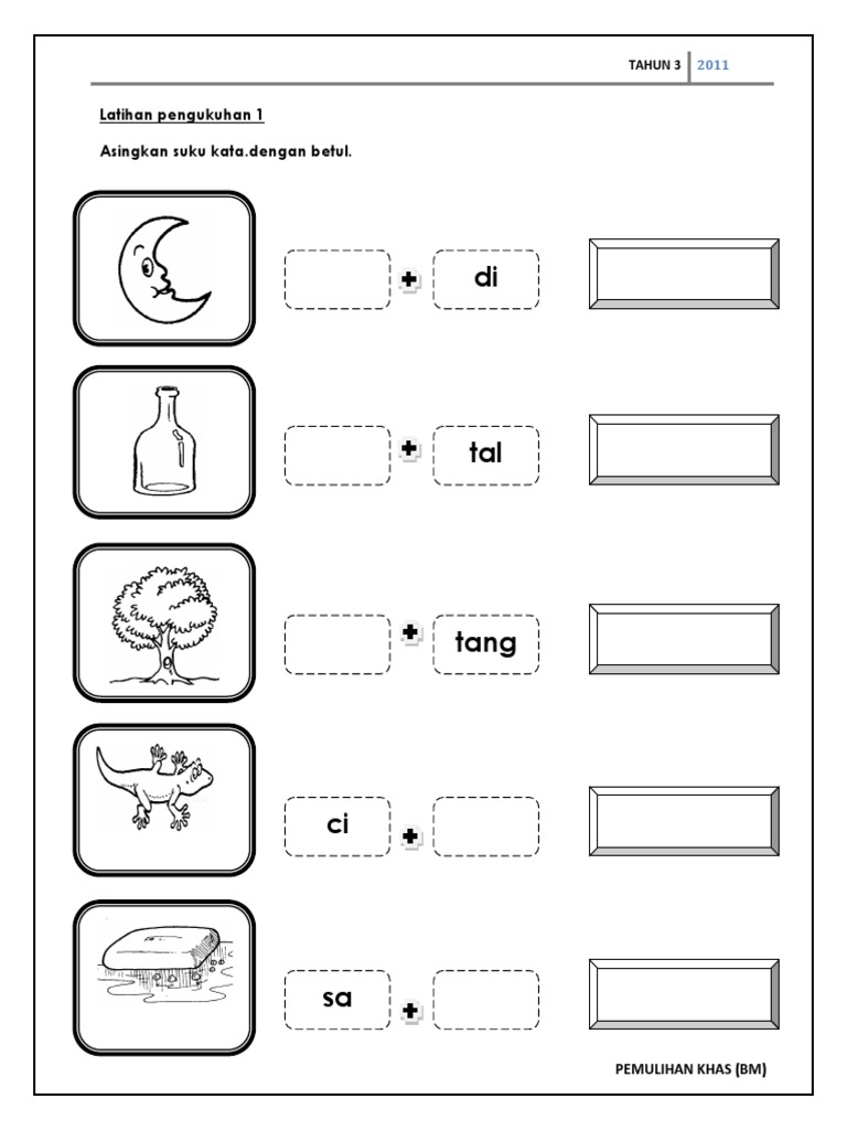 Pemulihan Khas Latihan Bahasa Malaysia Suku Kata Latihan Tema Kelas