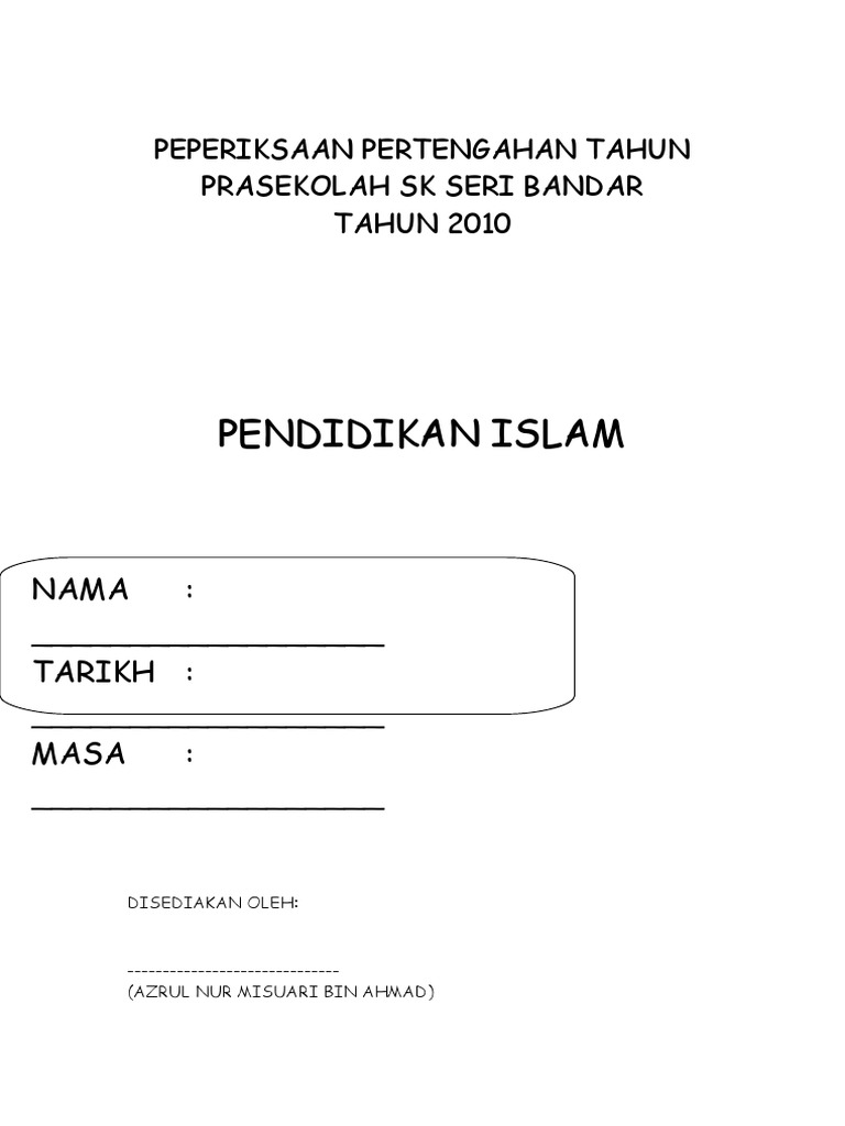 Soalan Peperiksaan Pendidikan Islam Prasekolah