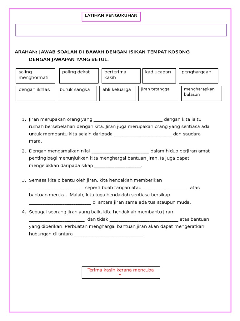 Latihan Pendidikan Moral Tahun 4 2020