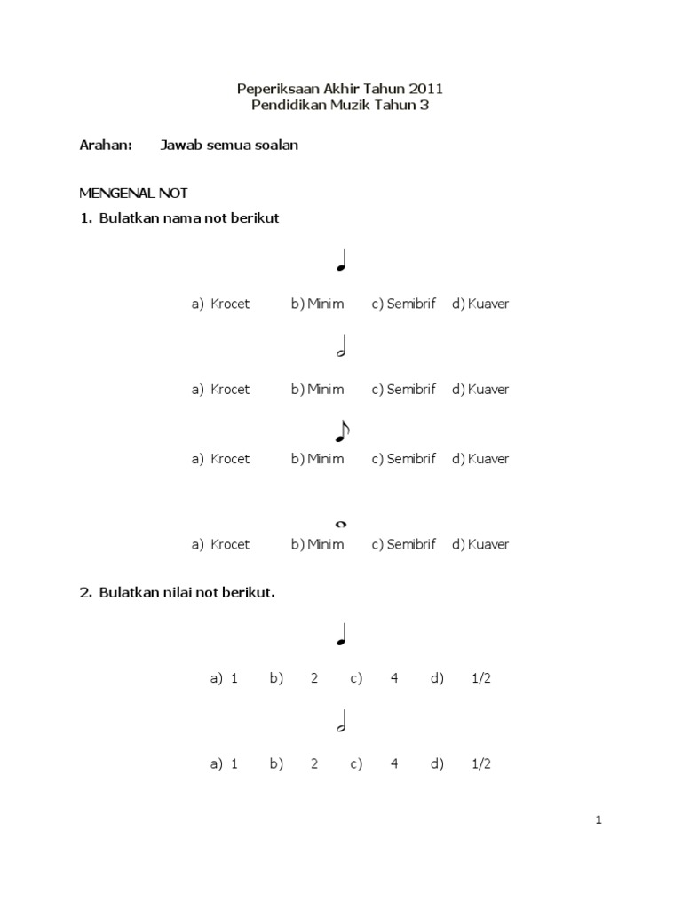 Contoh Soalan Muzik Tahun 1 Kssr Soalan Bt