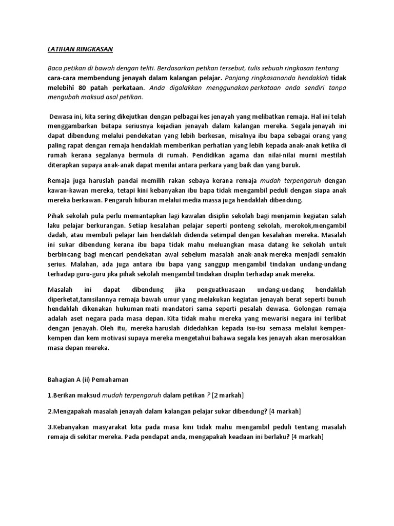 Contoh Soalan Rumusan Bahasa Melayu Pt3 Soalan An