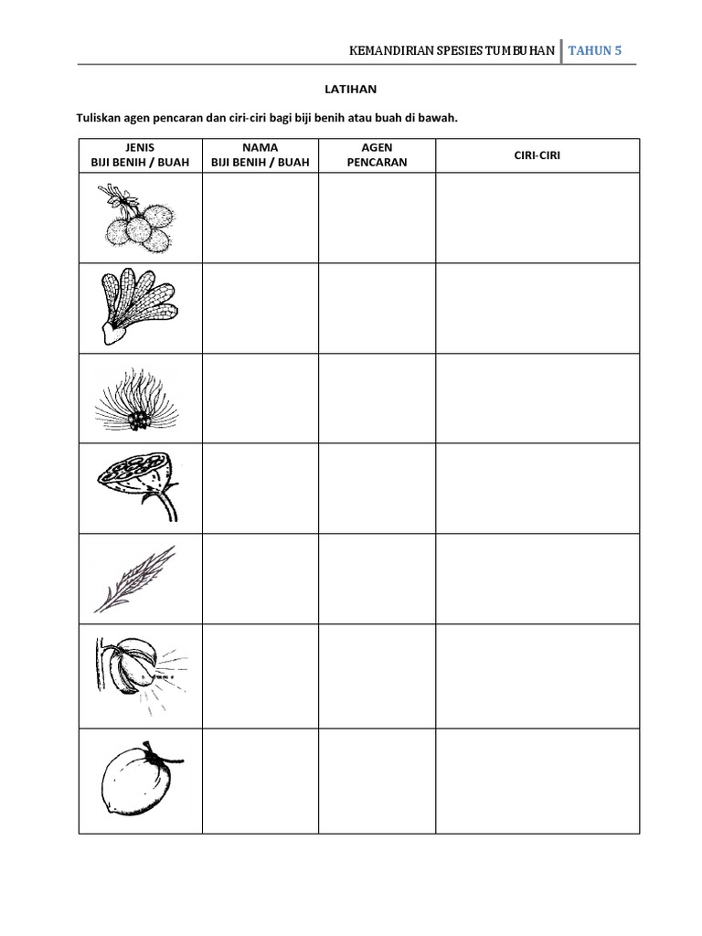Latihan Sains Tahun 1 Tumbuhan
