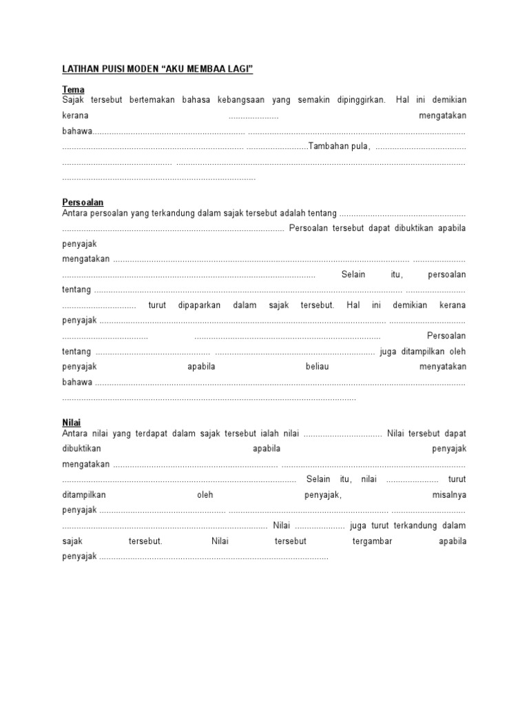 Bahasa Melayu Bahasa Malaysia Pmr Spm Komsas Tingkatan 4 Sajak Aku Membaca Lagi