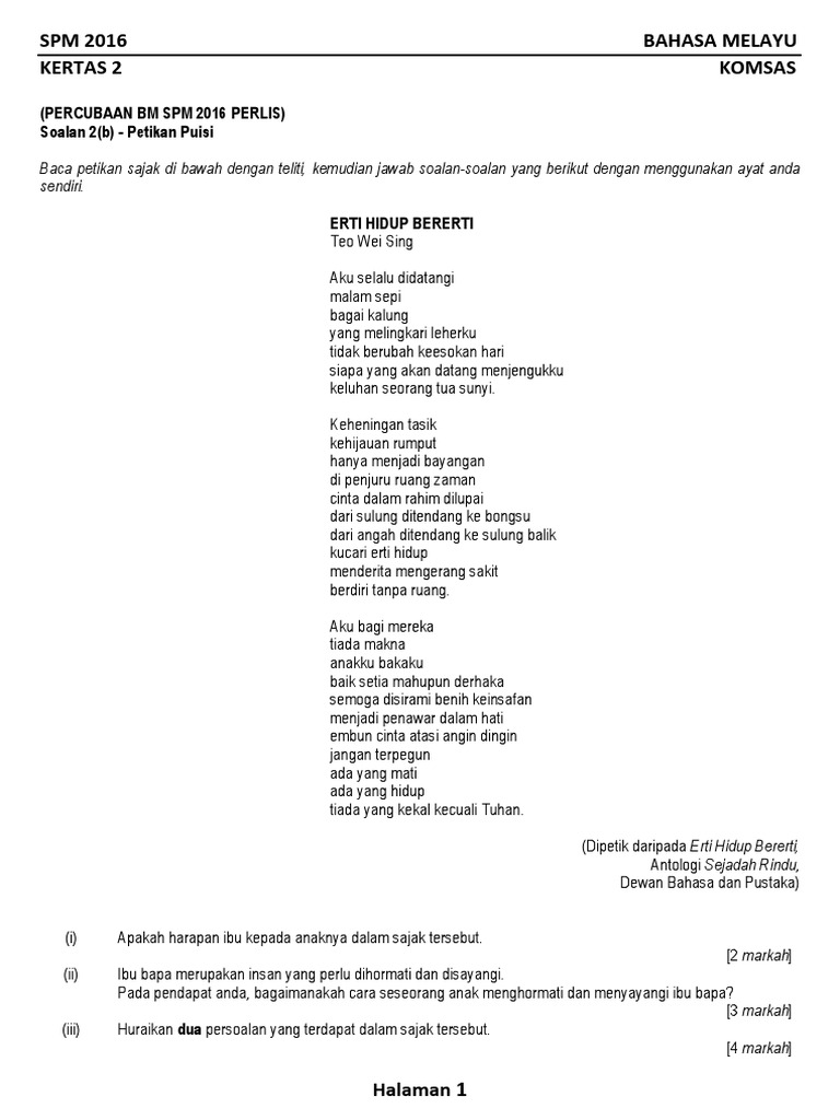 Contoh Soalan Komsas Sajak Aku Membaca Lagi Kecemasan J