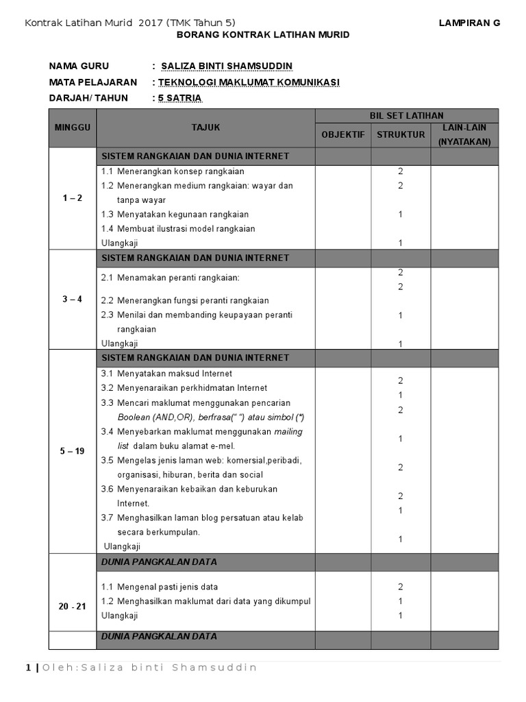Kontrak Latihan Murid Tmk Tahun 5 2017