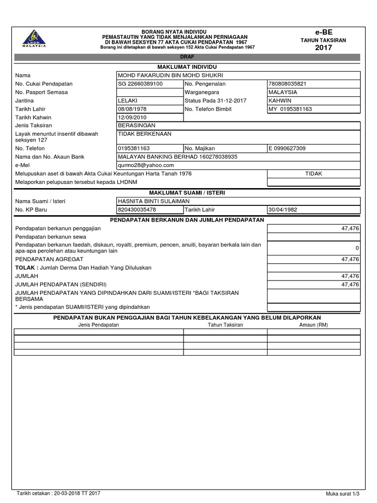 Draf Borang Lhdn