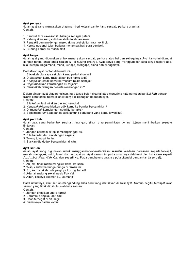 Nota Dan Latihan Tatabahasa Jenis Jenis Ayat Docx