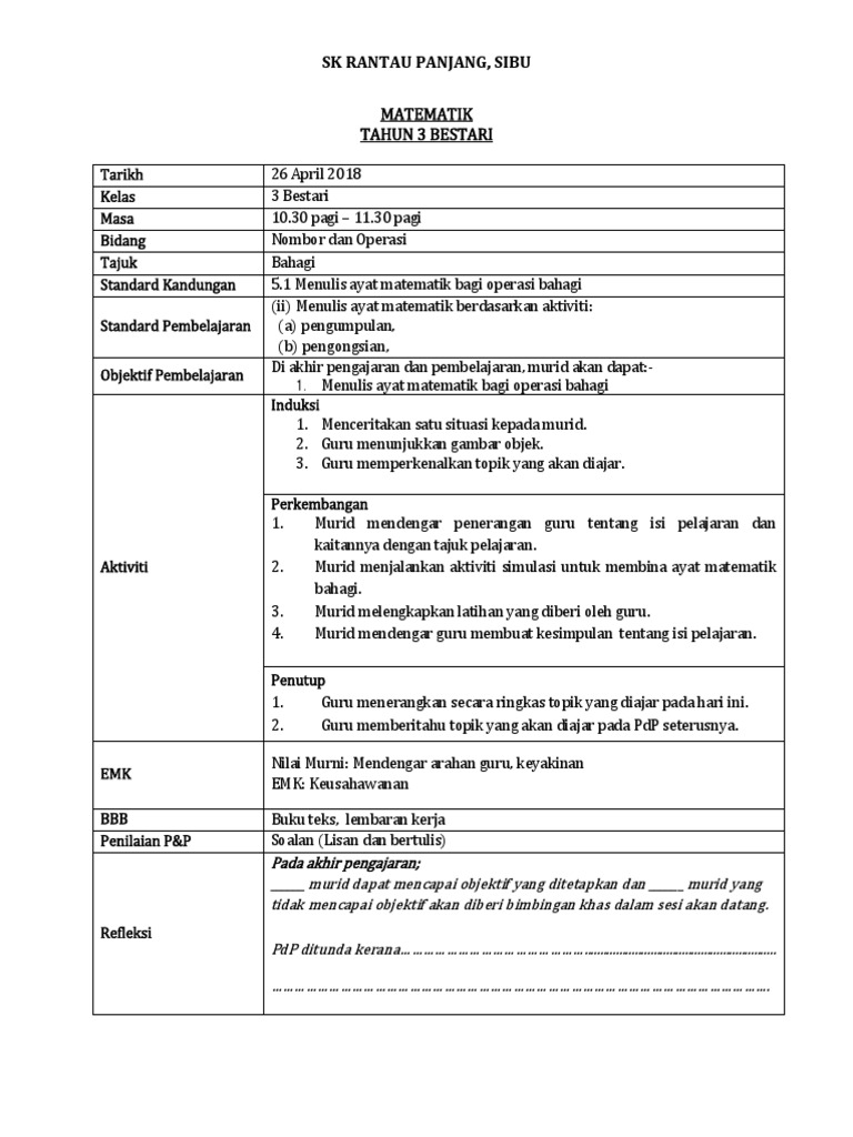 Rph Matematik Tahun 4 Tajuk Bahagi