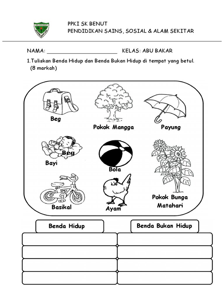Lembaran Kerja Benda Hidup Dan Benda Bukan Hidup Tahun 1