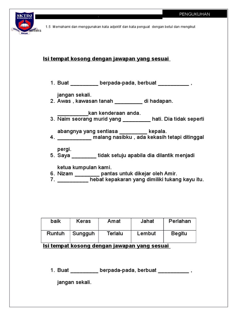 Contoh Soalan Kata Adjektif Upsr U Soalan