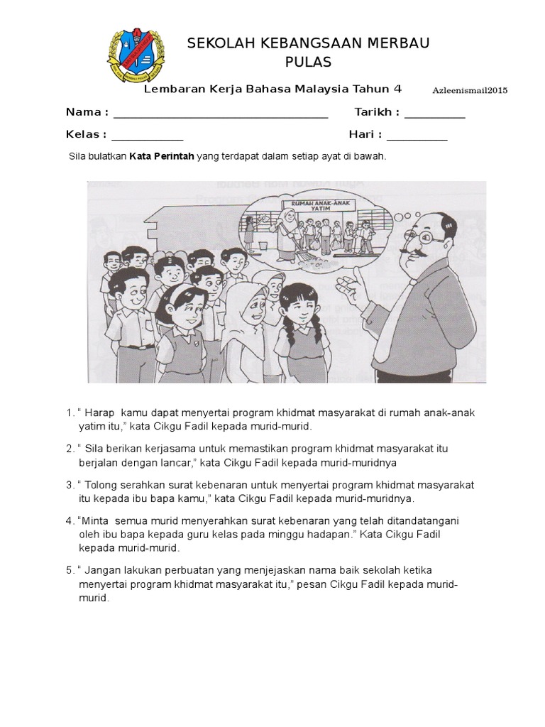 Lembaran Kerja Bahasa Malaysia Tahun 4 Tatabaha Kata Perintah Pemulihan