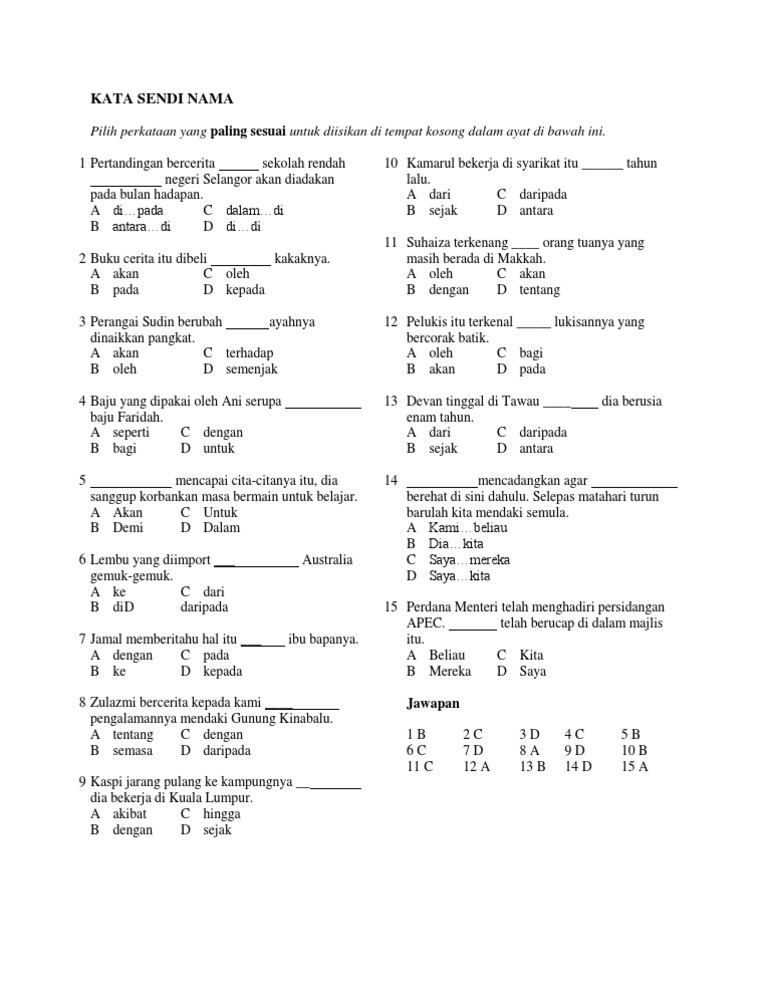 Kata Kata Sendi Nama Tahun 3 Sjkc