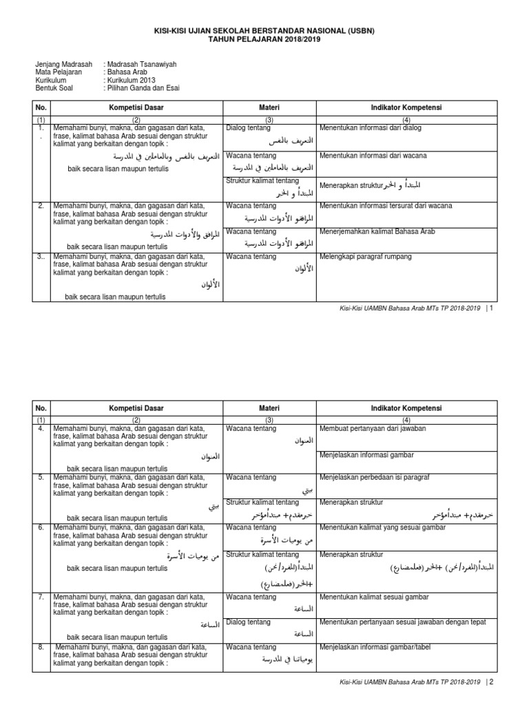 Contoh Kisi Kisi Soal Bahasa Arab Mts Guru Ilmu Sosial