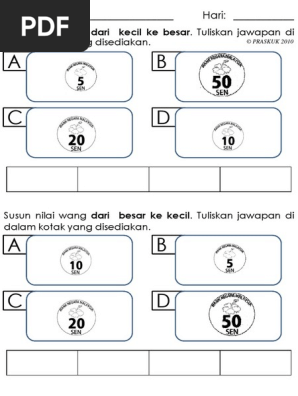 Lembaran kerja matematik nilai wang prasekolah. Lazimnya duit sama ada syiling ataupun wang kertas mempunyai nilai nilai tertentu yang tertera pada duit tersebut agar mudah untuk membezakan nilainya. Lembaran kerja prasekolah bahasa. Lembaran kerja ini kami hanya kongsikan hanya 6 muka surat sahaja tau. Lembaran kerja mengenal wang susun nilai wang.