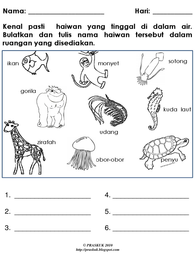 Bahasa Malaysia Prasekolah Latihan Haiwan Liar Preschool Activities Printable Preschool Learning Activities Preschool Writing