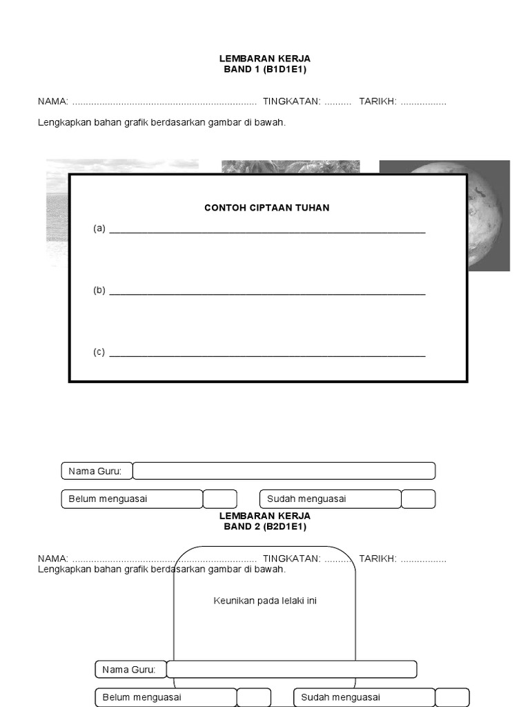 Lembaran Kerja Pendidikan Moral Tahun 1 Kepercayaan Kepada Tuhan