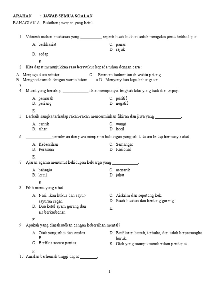 Contoh Soalan Pendidikan Moral Tahun 4 Kssr Kecemasan A