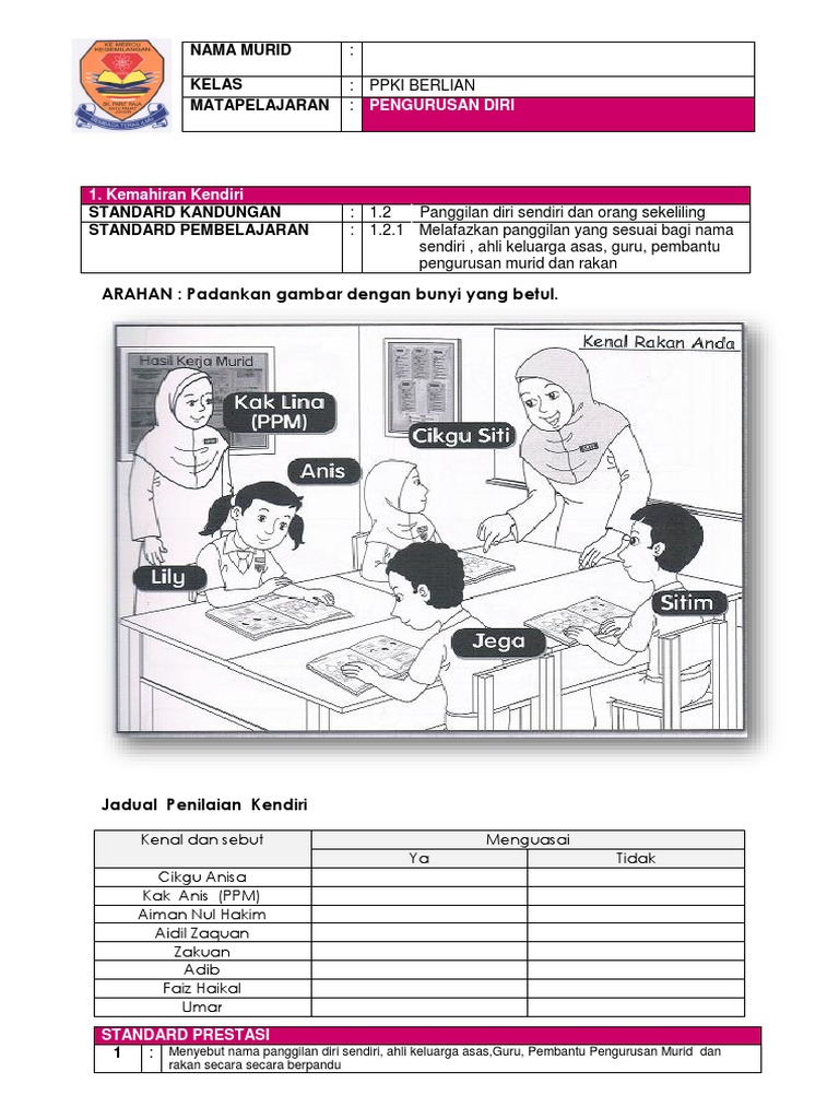 Lembaran Kerja Pengurusan Diri Tahun 2