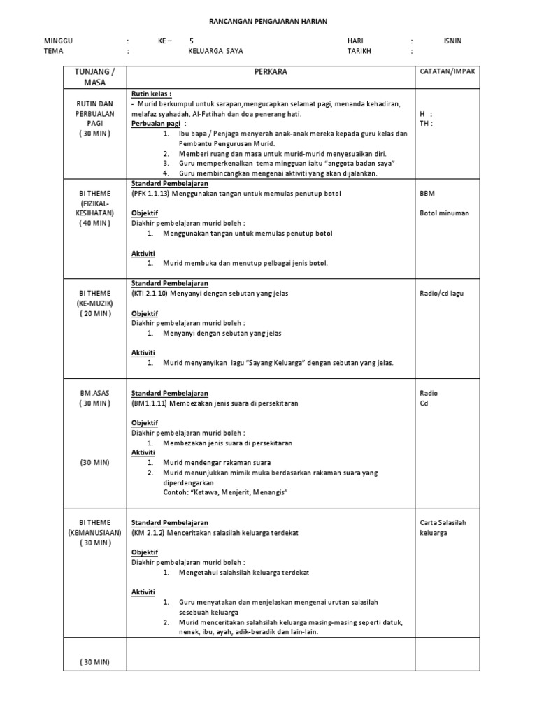 Rancangan Pengajaran Slot Tema Keluarga Saya Lfpm Kushovaschool Ru
