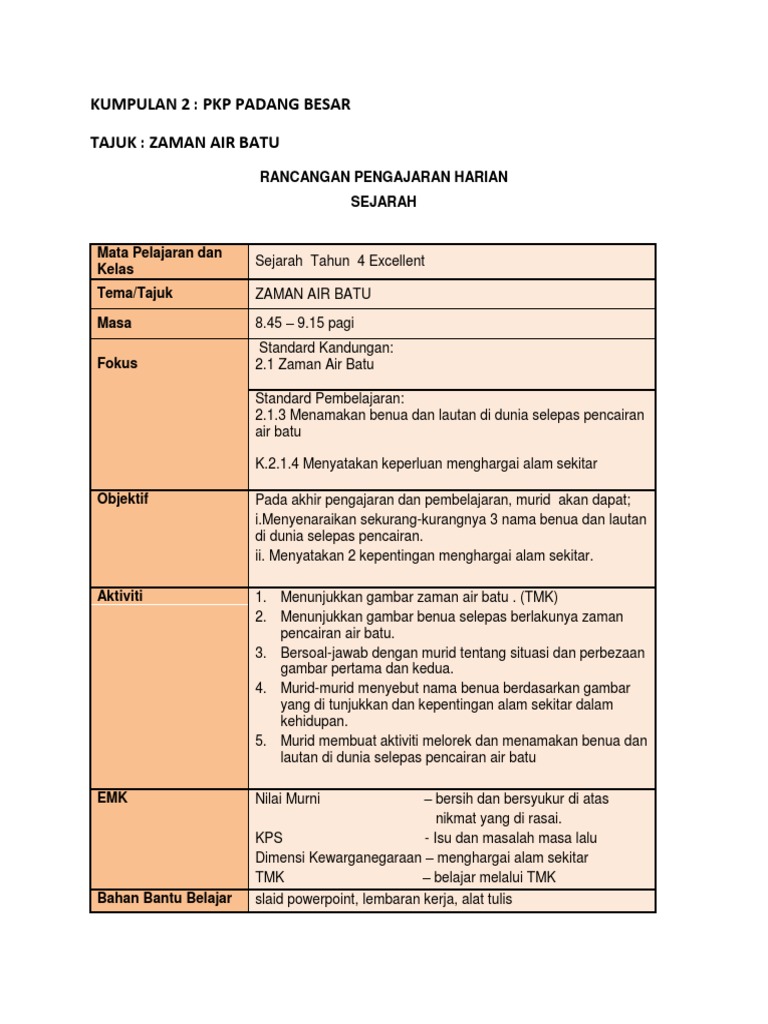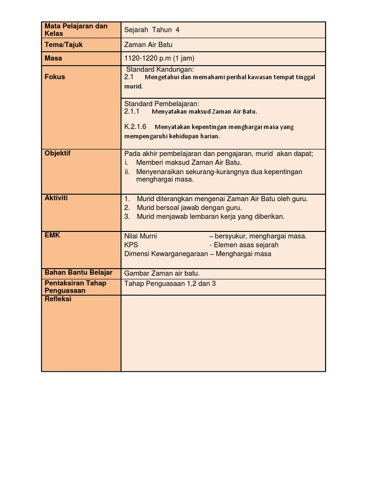 Rph Sejarah Tahun 4 Zaman Air Batu