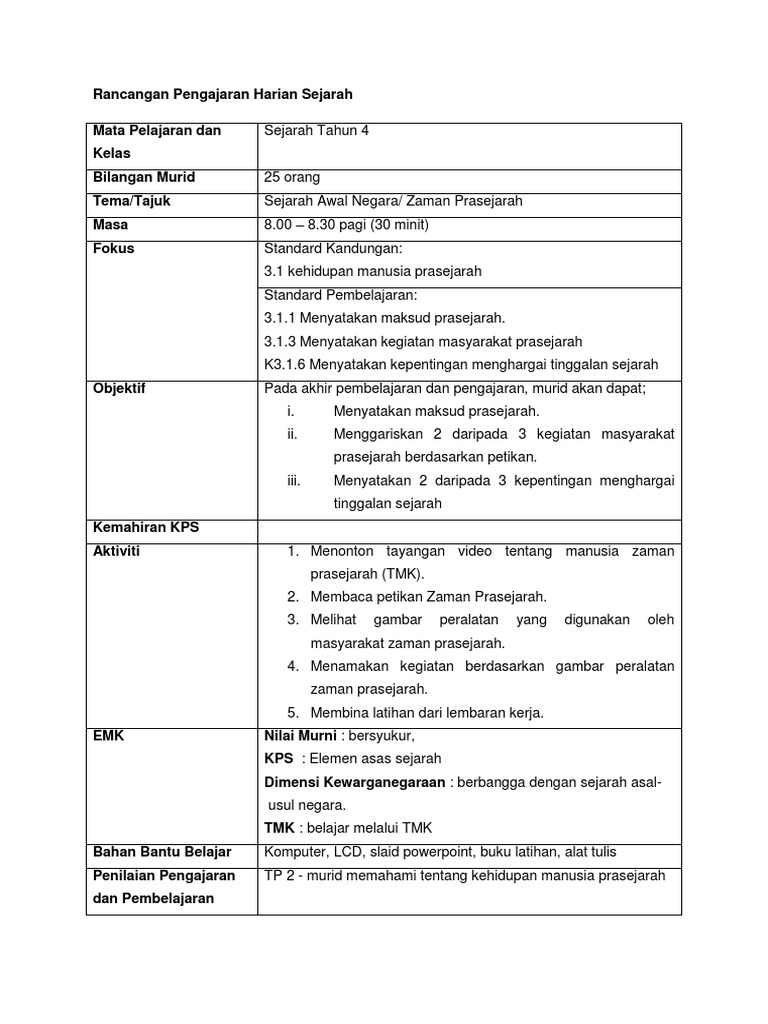 Rancangan Pengajaran Harian Sejarah Ikut Model Assure