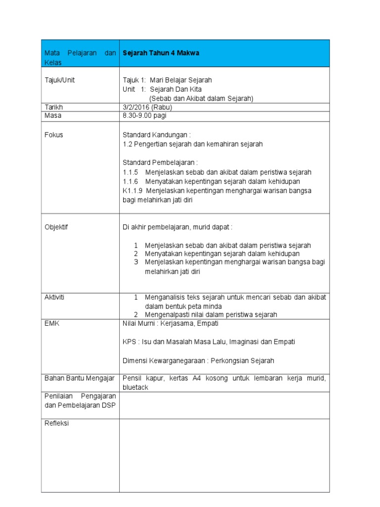 Rph Sejarah Tahun 4