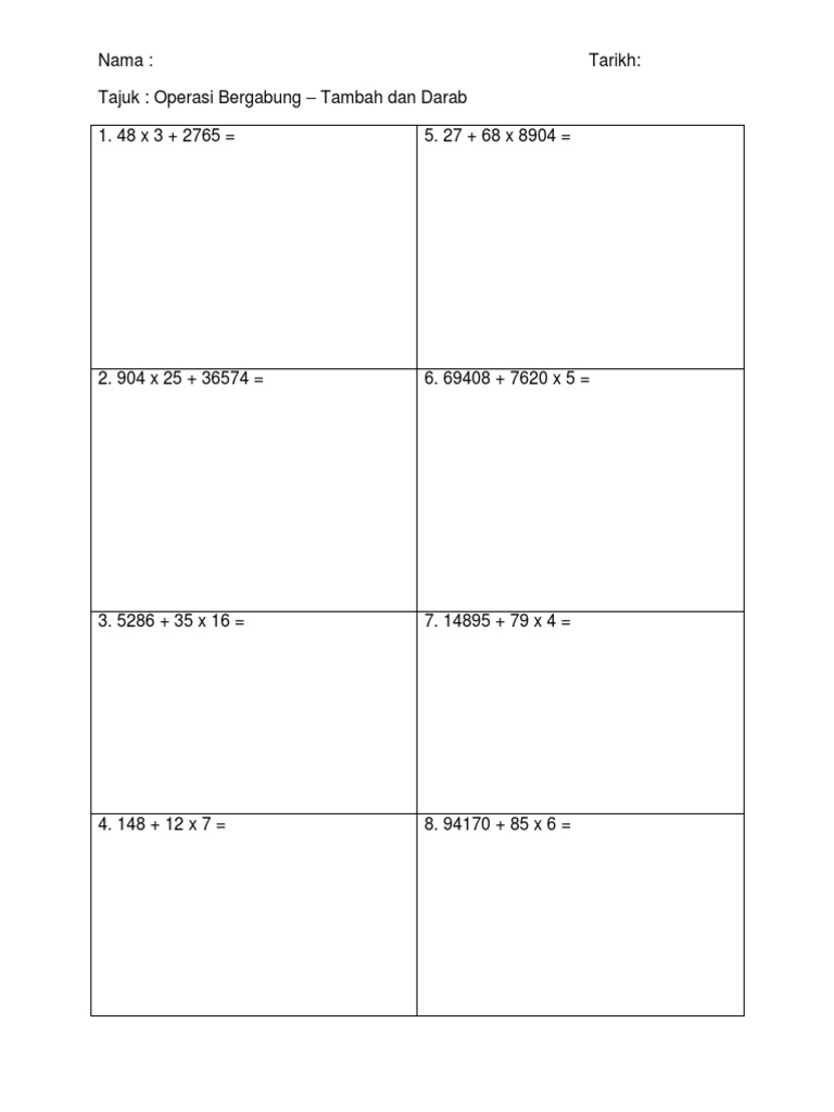 Lembaran Kerja Darab Bahagi Dan Pecahan Tahun 2