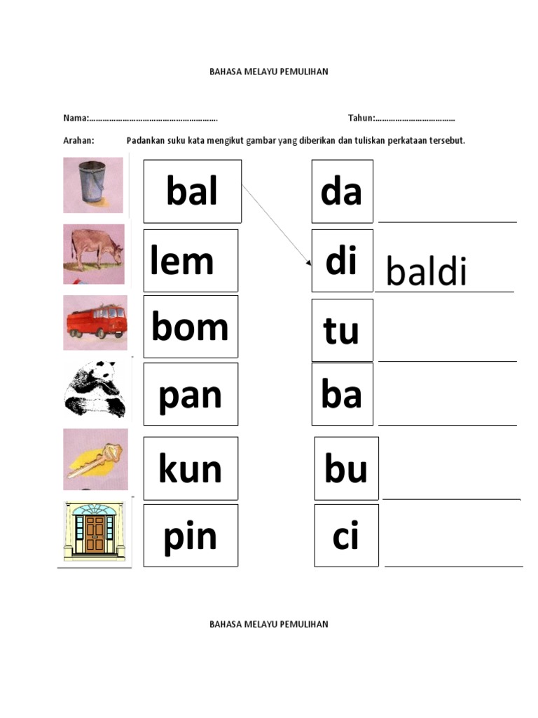 Pdf 125 Printable Lembaran Kerja Bahasa Melayu Buku Kerja Suku Kata Shopee Malaysia