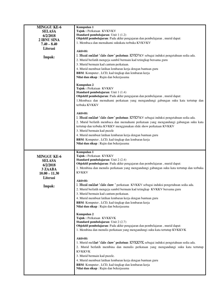 4 Kv Kv Kv Isi Suku Kata 3