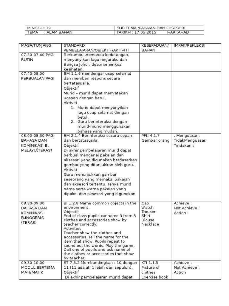 Prasekolah Sk Ulu Kakus Tema Mingguan Pakaian Lembaran Kerja Tambahan