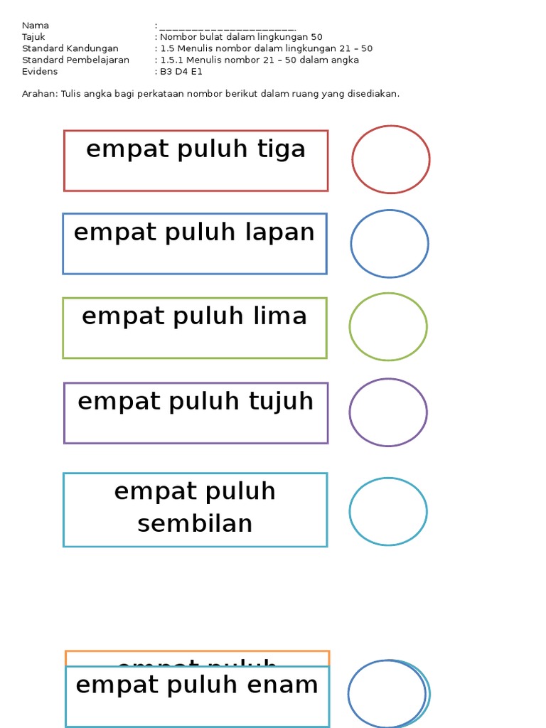 Lembaran Kerja Tulis Nombor Dalam Perkataan