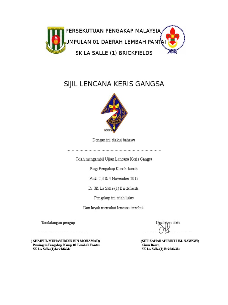 Sijil Lencana Keris Gangsa Docx