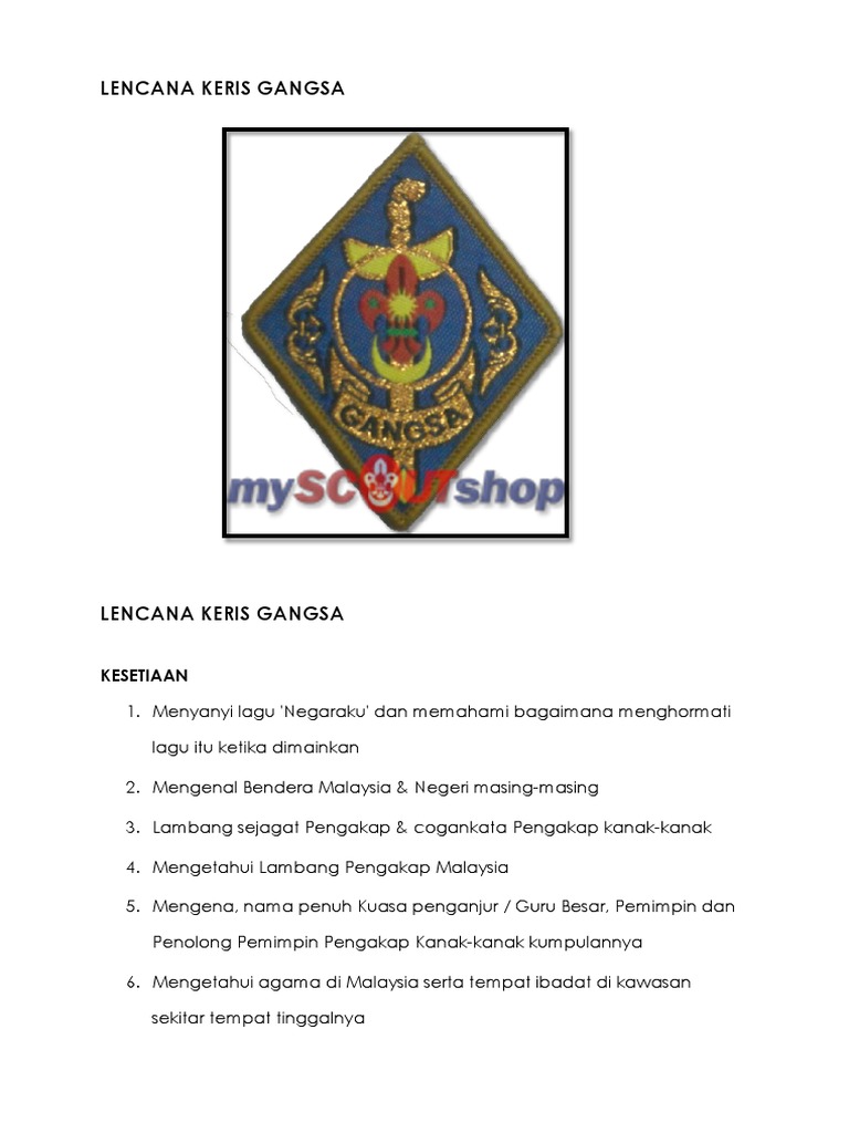 Salam Pengakap Lencana Keris Gangsa Pkk 5 Lambang Pengakap Malaysia