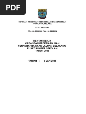 Kertas Kerja Cadangan Keceriaan Dan Penambahbaikkan Laluan Belakang Pusat Sumber Sekolah Tahun 2015