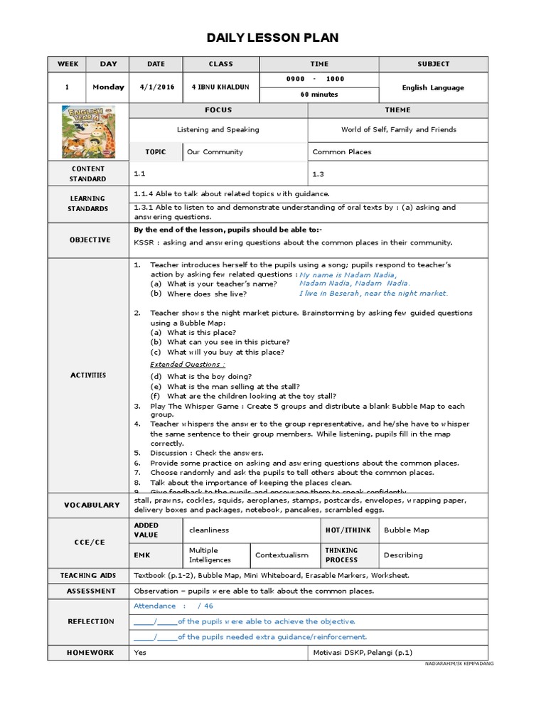 Doc English Year 4 Kssr Lesson Plan Example Lahung Wan Academia Edu