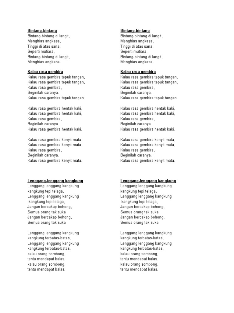 Lirik Lagu Kanak Kanak Bahasa Melayu