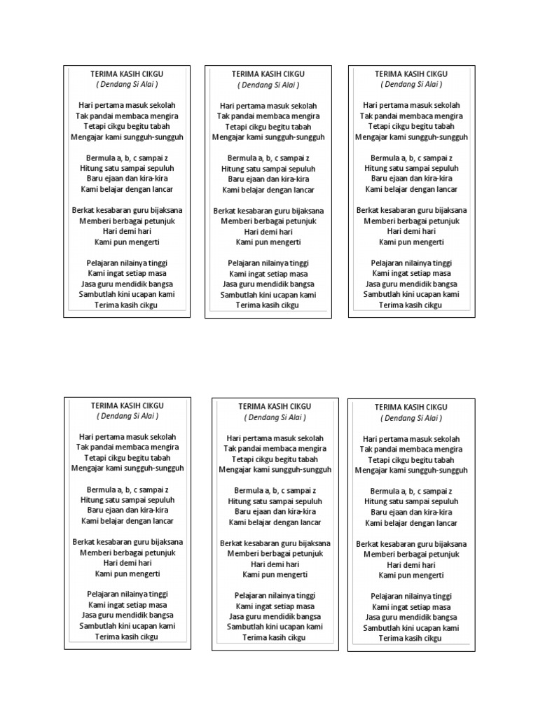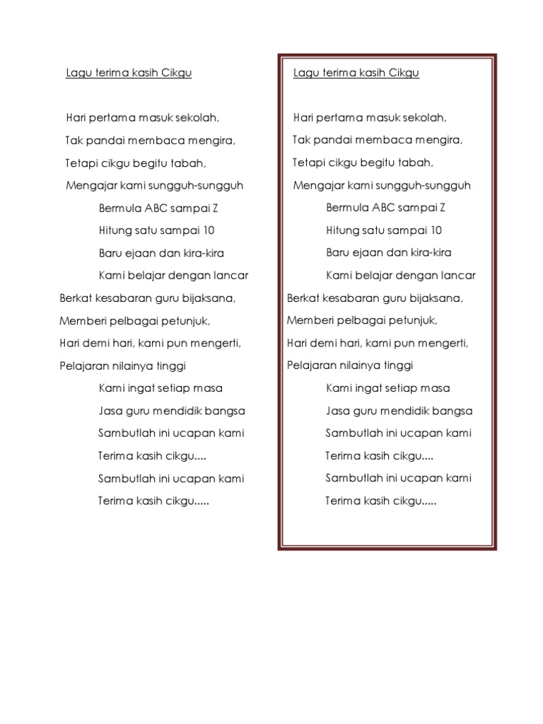 Lirik Terima Kasih Cikgu Salwa Sulaiman Academia Edu
