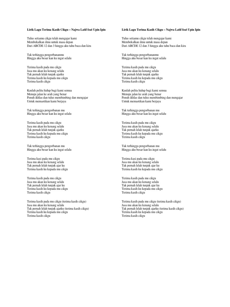Lirik Lagu Terima Kasih Cikgu By Najwa Latif Feat Upin Ipin K546wq0x17l8