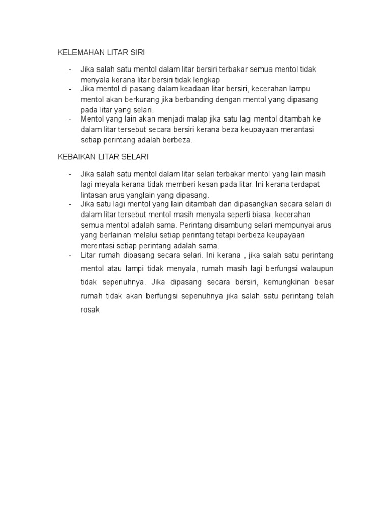 9 Litar Bersiri Dan Selari Pps Litar Bersiri Dan Selari Litar Bersiri Susunan Perintang Secara Bersiri Litar Selari Susunan Perintang Secara Selari Course Hero
