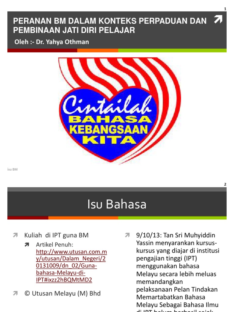Peranan Bm Dalam Konteks Perpaduan Dan Jati Diri Bhg 1