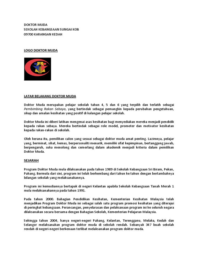 4 Perlembagaan Kelab Doktor Muda Doc Document