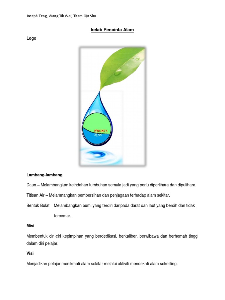 Pdf Kertas Cadangan Penubuhan Kelab Pencinta Alam Sekitar Nur Asyiqin Academia Edu