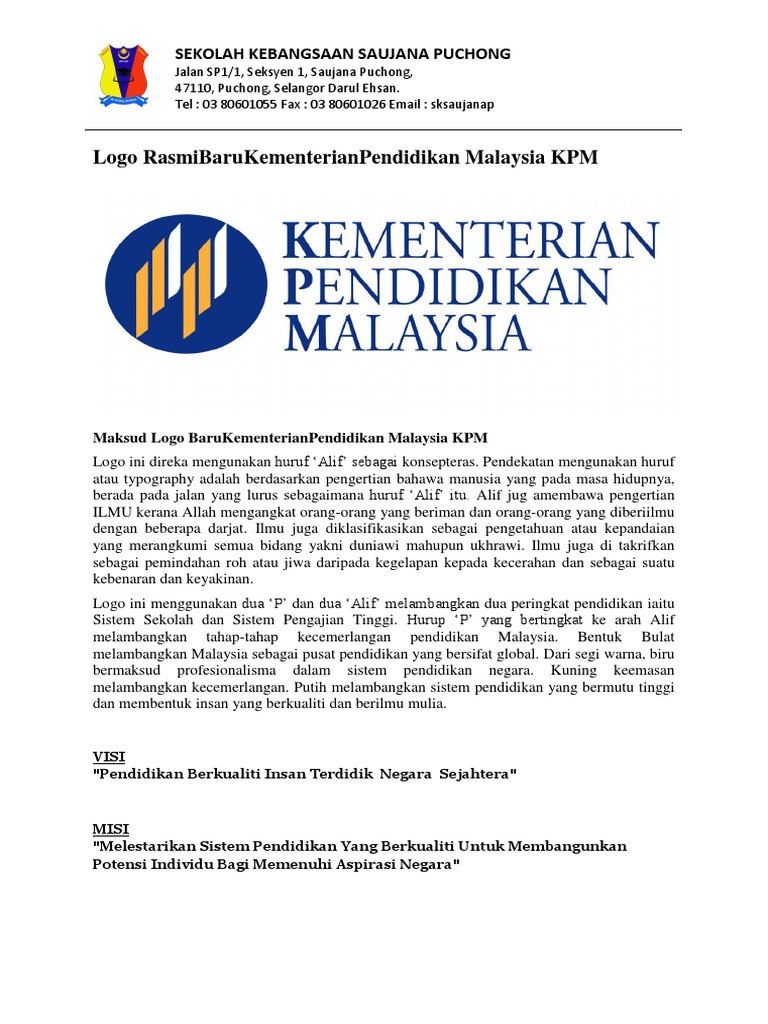 Sekolah Kebangsaan Padang Jawa Logo Kpm Kementerian Pendidikan Malaysia Visi Dan Misi Yang Baru